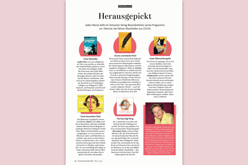 Jeden Monat darf ein Schweizer Verlag im Magazin des Schweizerischen Branchenverbands SBVV die persönliche Bücherauswahl vorstellen. Im Herbst waren wir an der Reihe. Hier sind die ausgewählten Bücher (und die Gründe, warum wir sie herausgepickt haben). PDF-Download.
